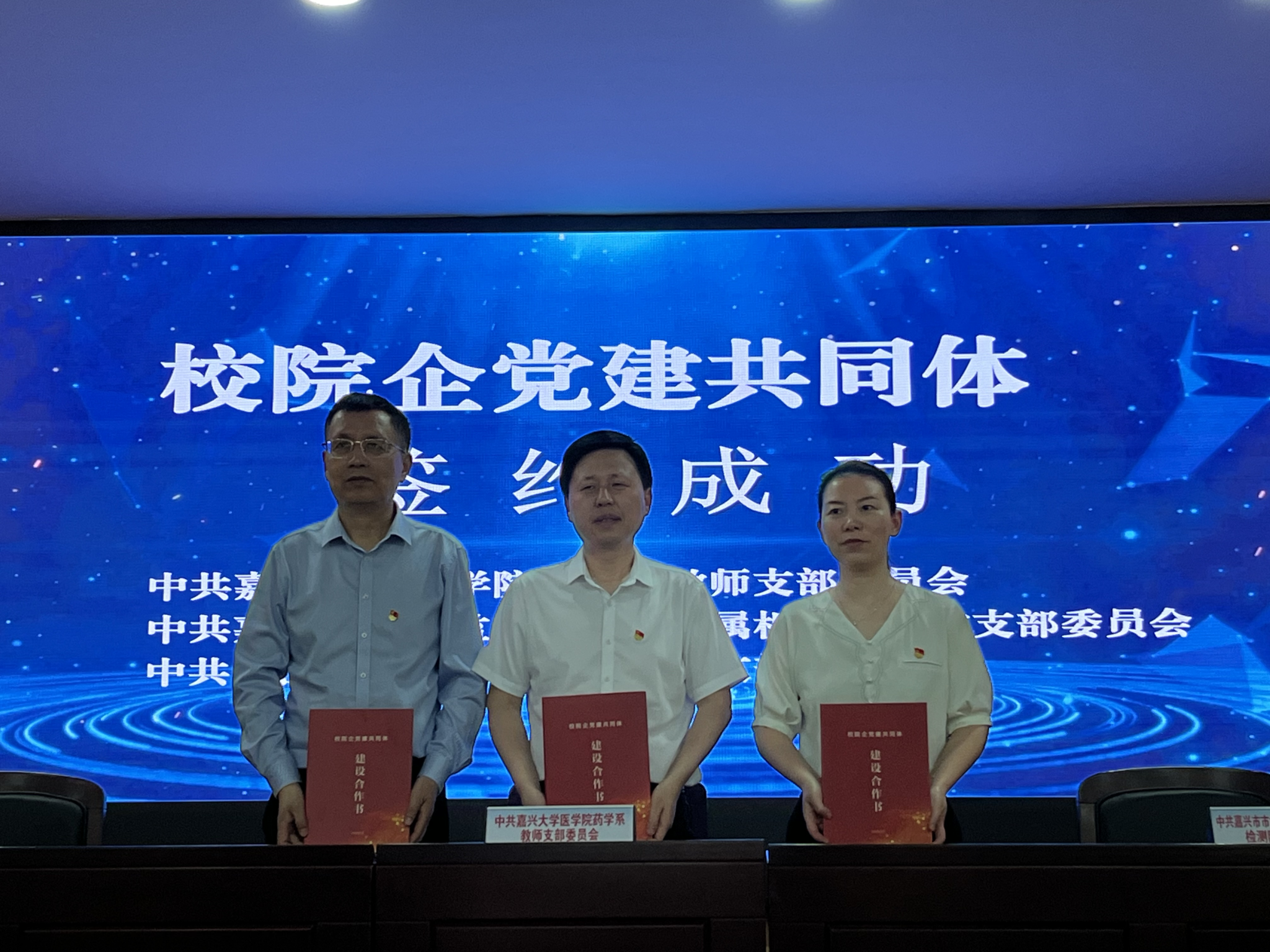 药学系教师党支部、嘉兴市市场监督管理局直属机关检测院支部和浙江泰利森药业有限公司支部共同签署“校院企”党建共建协议。该协议旨在通过资源整合和优势互补,共同探索党建工作的新路径。三方约定将定期举办联合党课、研讨会和主题党日等活动,共同开展党员教育、党风廉政建设和社会实践等项目。协议的签署标志着“校院企”三方党建共建机制的正式建立,为今后的深入合作打下了坚实基础。