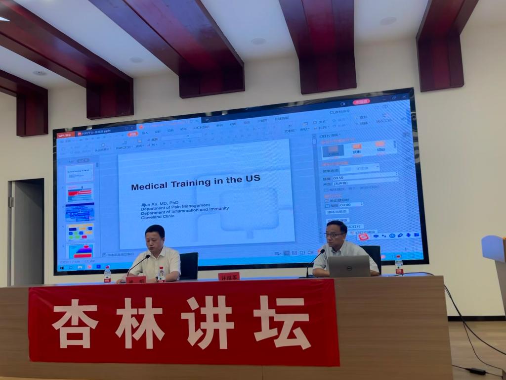 围绕“美国医学教育”,许继军教授从学历等级、选拔制度及如何选择自己感兴趣的科室等三方面详细讲述了美国医学教育的基础模式。最后,他以克利夫兰医学中心的一段宣传视频为切入口,希望更多同学坚守医学梦想,求学深造,潜心钻研,勇于创新,担负起守护人民健康之责。