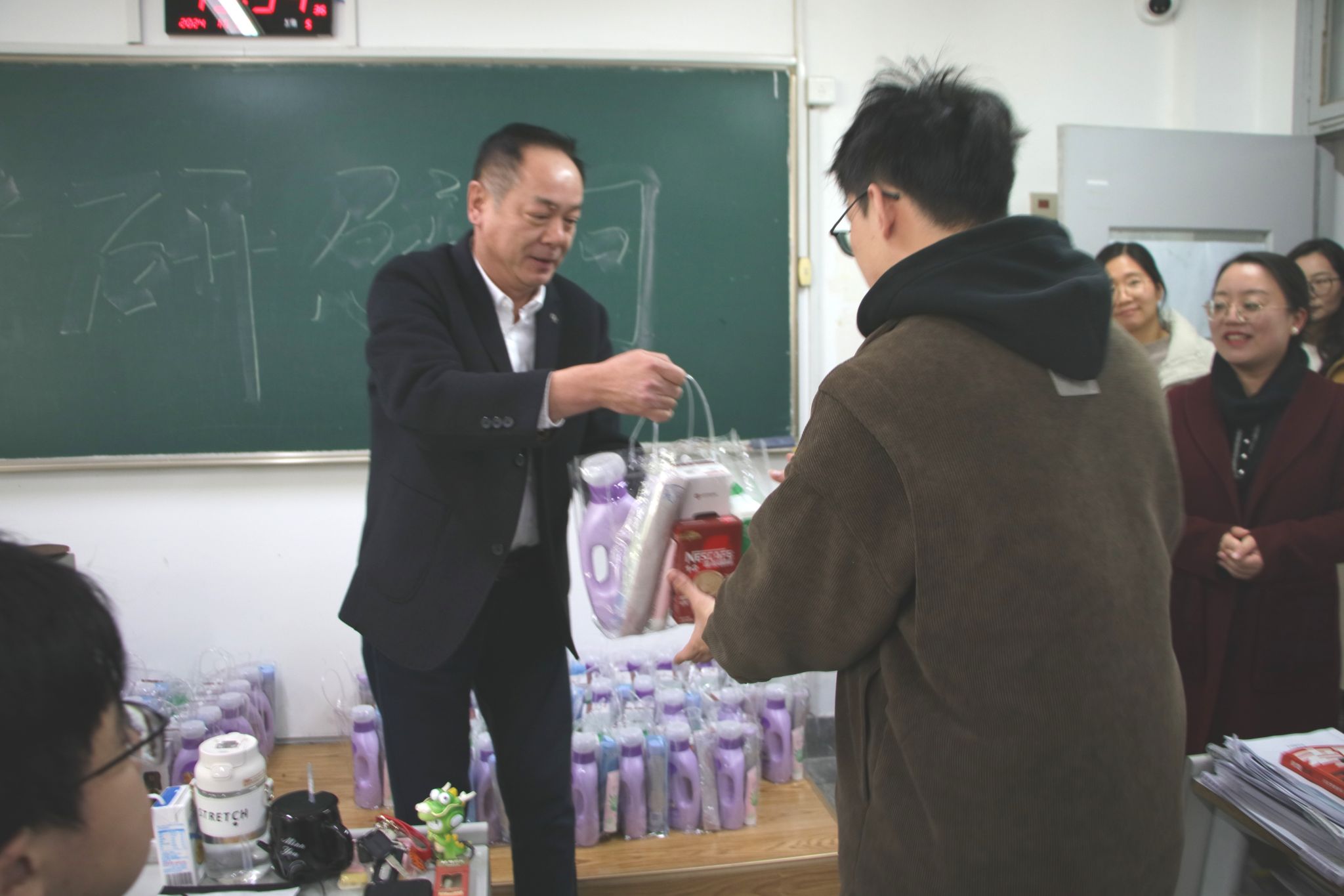 为同学们送上考研祝福,勉励同学们坚定考研信心,针对同学们的备考情况进行深入交流,提供相应建议,引导学生积极备考,鼓励大家全力以赴,考出理想成绩,成功上岸。随后,辅导员们为每位考研学子送上“考研礼包”,表达对他们的关心与鼓励。