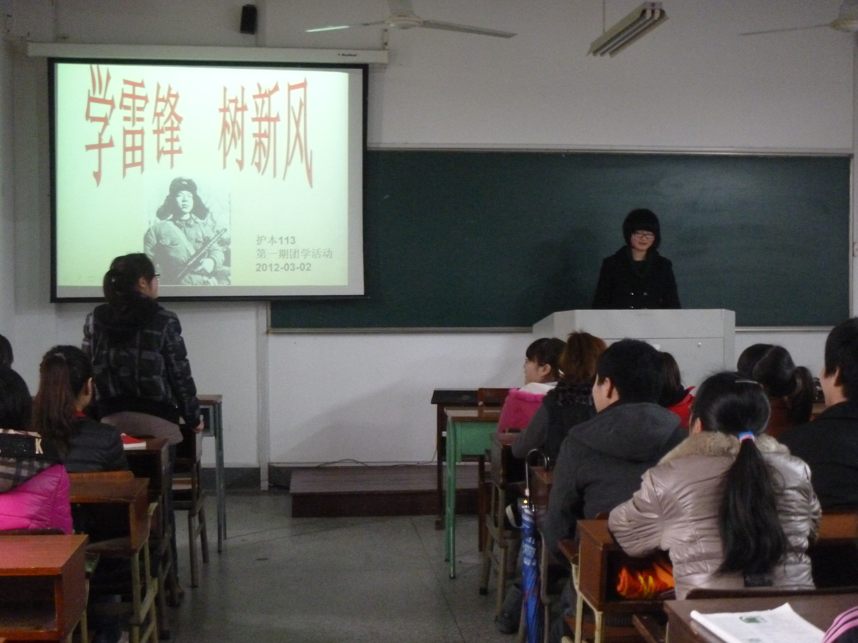 2012年3月2日星期五下午,在教四205护本113班开展了以“学雷锋,树新风”为主题的团学活动。