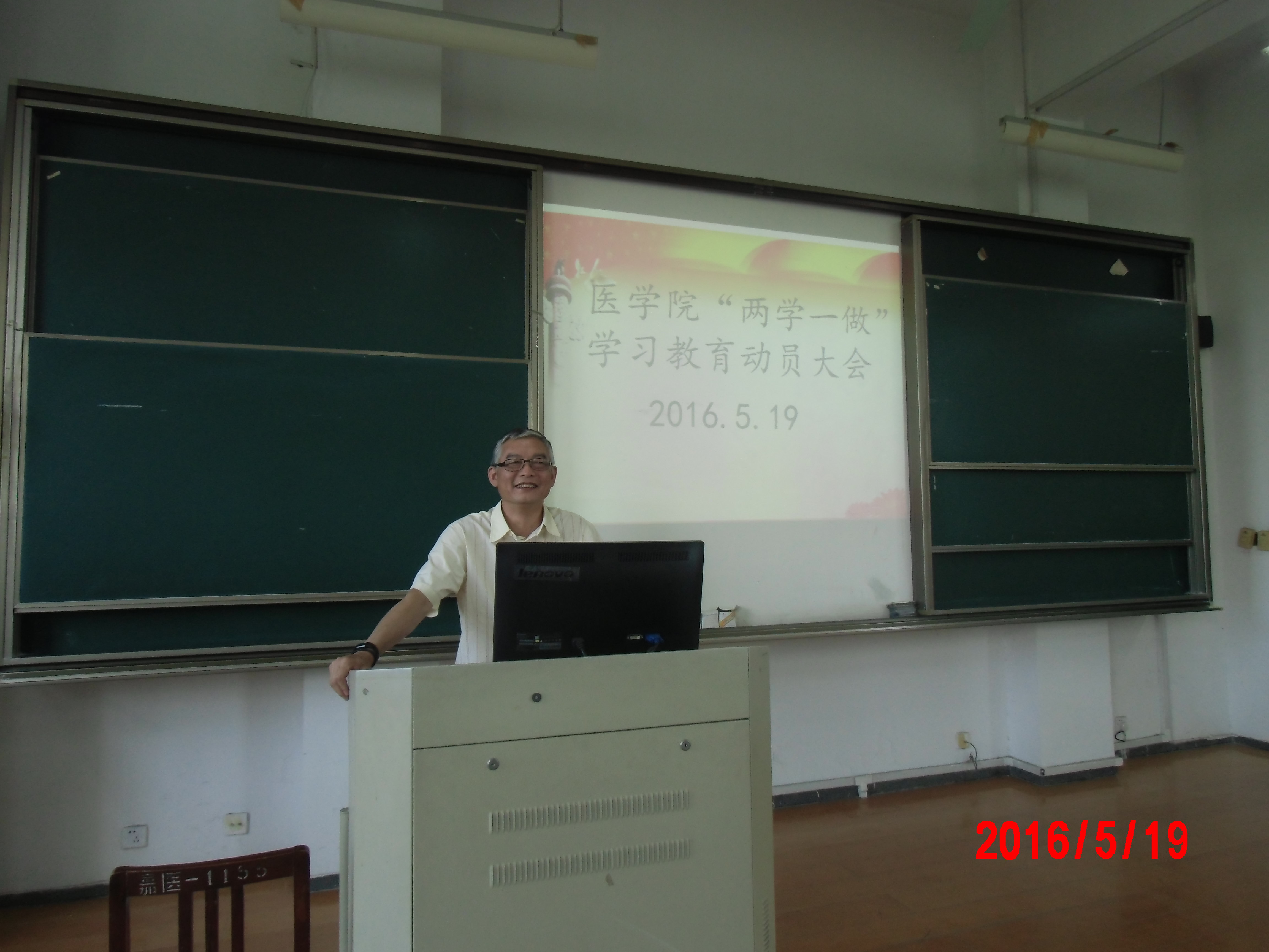全体师生党员开展“两学一做”学习教育动员部署。院党委书记惠太望主持会议并作动员报告,他强调,“两学一做”学习教育是加强党的思想政治建设的一项重大部署,各级基层党组织要履行抓好“两学一做”学习教育的主体责任,突出问题导向,确保取得实际成效,把从严治党落实到每个支部、落实到每名党员。
