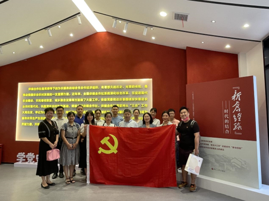 大家首先参观了毛泽东同志新仓经验批示展示馆,展陈内容分“与农民同心——一则批示誉天下”、“与发展同步——三方结合禀初心”、“与改革同进——三位一体担使命”、“与时代同行——乡村振兴谱新篇”4个篇章,利用图片、实物和多媒体等形式多角度、多渠道展示了供销合作社的发展历程,以及在实践中取得的新经验、新成绩。