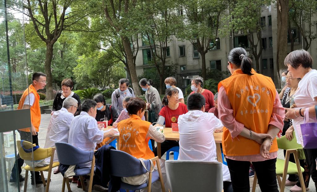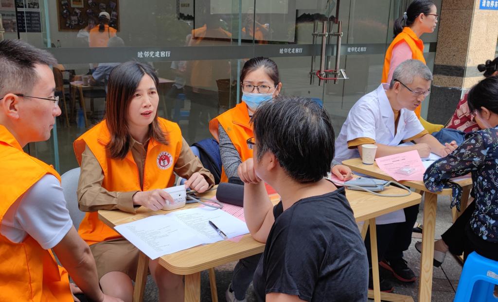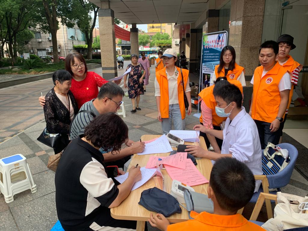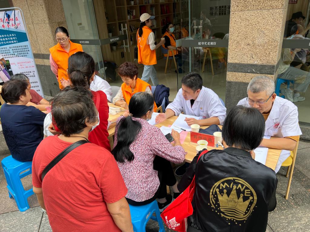 杨鑫骥、黄雄等老师发挥执业药师的专业特长,为居民群众开展药师咨询服务,耐心解答日常生活的用药困惑和误区,引导群众听从医嘱,正确用药。陈士票、朱群娥、蒋小红等老师为社区居民进行了血压测量,提出合理化建议。