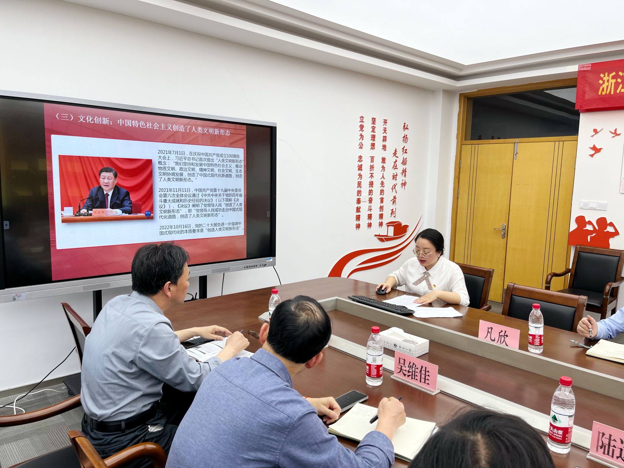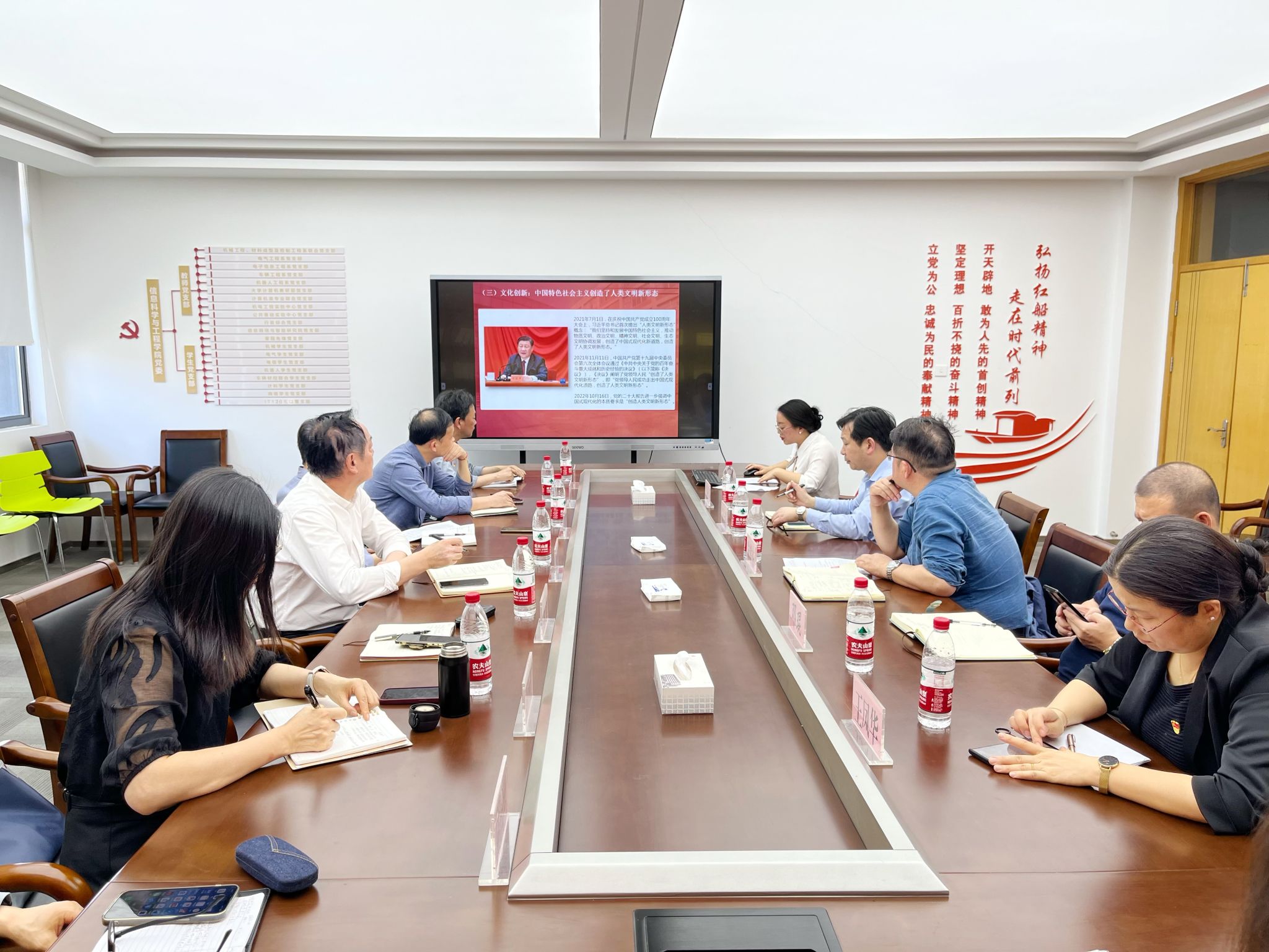 党委理论学习中心组在悦礼楼505会议室开展联学活动,深入学习习近平文化思想,会议由信息科学与工程时时彩