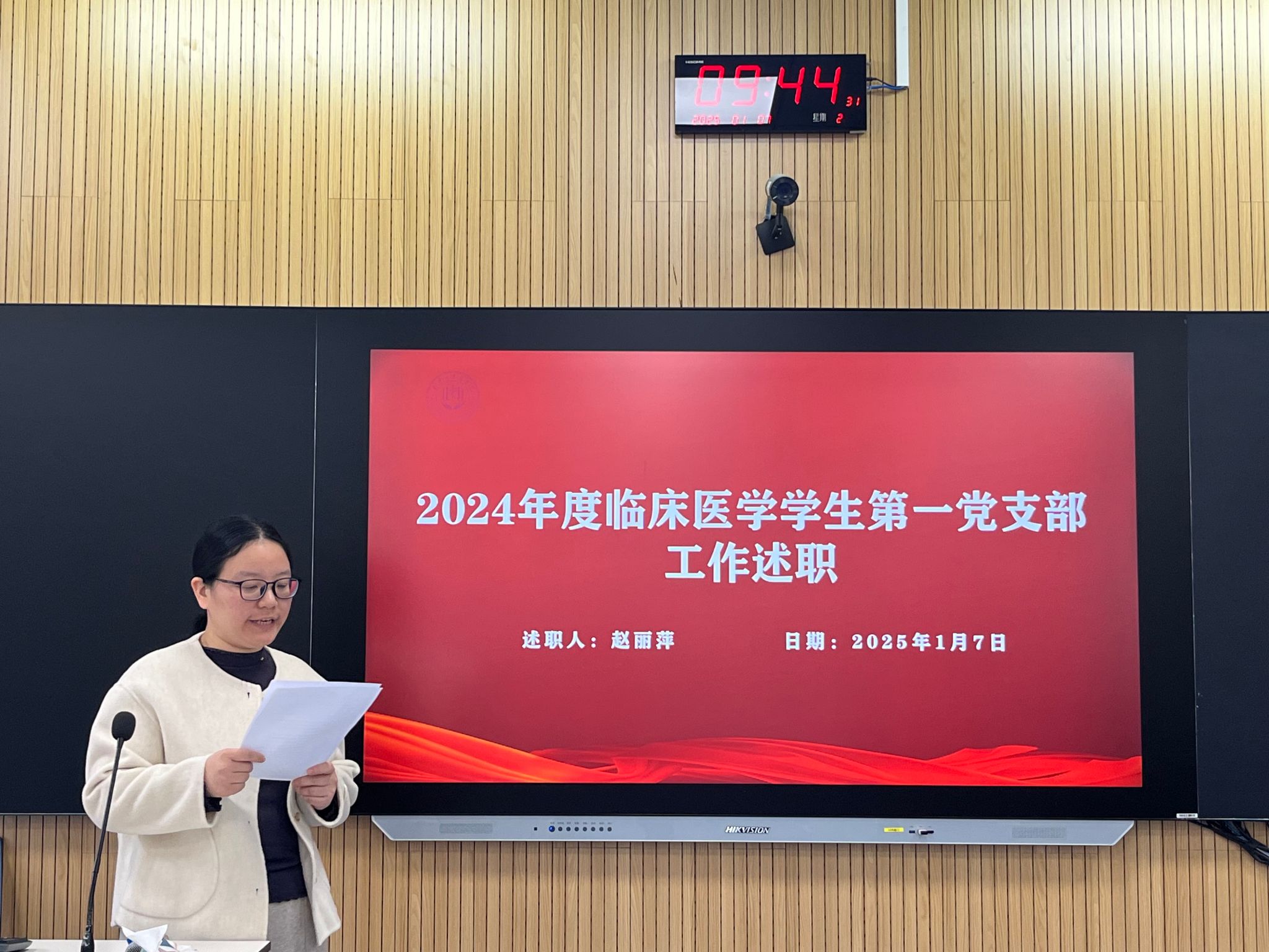 7个教师党支部和7个学生党支部分别围绕政治建设、思想建设、组织建设、作风建设、党建与业务相融合等方面对支部工作进行了全面汇报,展示了支部在过去一年开展的各项理论学习活动及取得的成绩等,并对支部存在的问题进行剖析,分析深层次原因,提出2025年工作目标及思路举措。