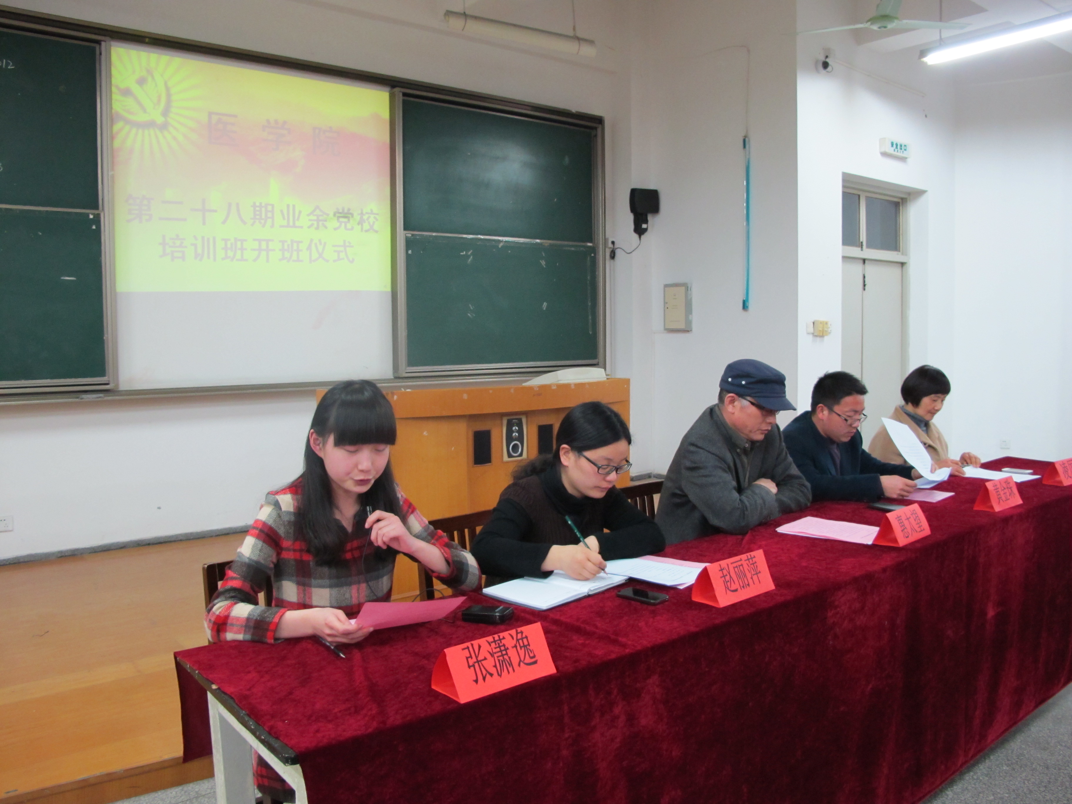 开班典礼在雄壮的国歌声中开始。首先,黄金珠副书记宣读了第27期业余党校优秀学员名单并给予表彰。随后护本133班张潇逸同学作为本期党校学员代表发言,承诺将严格遵守党校学员管理规定,积极参加党组织的各项活动,将以最饱满的热情来完成党课学习。惠太望书记围绕“时间都去哪儿了”作了深刻的讲话,同时提出3点希望让学员们明确学习的重点,珍惜学习机会,能学以致用,具体落实到行动上。最后,他预祝第28期业余党校学员能圆满完成学业,顺利结业。尾声,班主任赵丽萍老师宣布业余党校课程学习纪律和要求及分班情况。