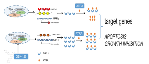 肝癌具有高度异质性,患者对全反式维甲酸(ATRA)的敏感性差异显著,限制了其临床应用。研究发现,维甲酸受体γ(RARγ)是ATRA抑癌作用的关键介质,而EZH2抑制剂GSK126可通过降低H3K27me3修饰水平上调RARγ表达,从而增强肝癌细胞对ATRA的敏感性。实验证实,GSK126与ATRA联用可协同抑制肿瘤增殖、促进凋亡、阻滞细胞周期于G1期,并抑制迁移。本研究揭示了ATRA敏感性差异的分子机制,提出了基于EZH2抑制剂的联合治疗策略,为ATRA耐受的肝癌患者提供了个体化用药方案,具有重要临床意义。