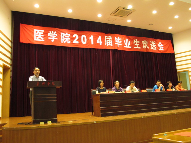 在悠扬的国歌声中,大会正式开始。黄嬛副院长宣读优秀毕业生名单,其中省级13名,校级51名,院级29名。王敏副院长随后宣布各优秀学生名单,其中考取研究生24名,优秀实习生10名以及在2014年度华东赛区及浙江省大学生医学竞赛中获奖人员18名。随后,党委副书记黄金珠老师就毕业生就业情况进行通报,并有请毕业生代表徐海琦同学与教师代表黄越燕老师发言。最后,孟继鸿院长致词,为大会画上圆满的句号。