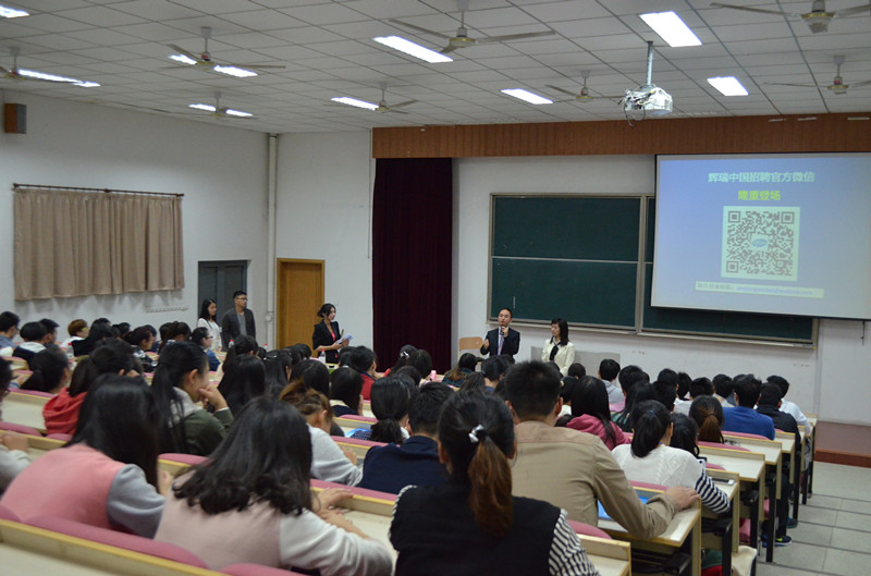 招聘会伊始,彭溶老师简单地介绍了辉瑞与时时彩 的现状与发展历程,并且对辉瑞公司的到来表示欢迎。随后辉瑞公司周雪风经理介绍了辉瑞今日的成就与规模,并且介绍了辉瑞旗下品牌与近几年在中国的发展。人才招聘任怀 颖经理介绍了瑞辉公司不仅在工作上为员工提供的多样化职业选择与专业系统培训,而且在生活上也为员工提供各方面的帮助与福利,例如心理辅导中心、社团活动以及免费旅游的福利,她表示辉瑞非常期待大家的加入。