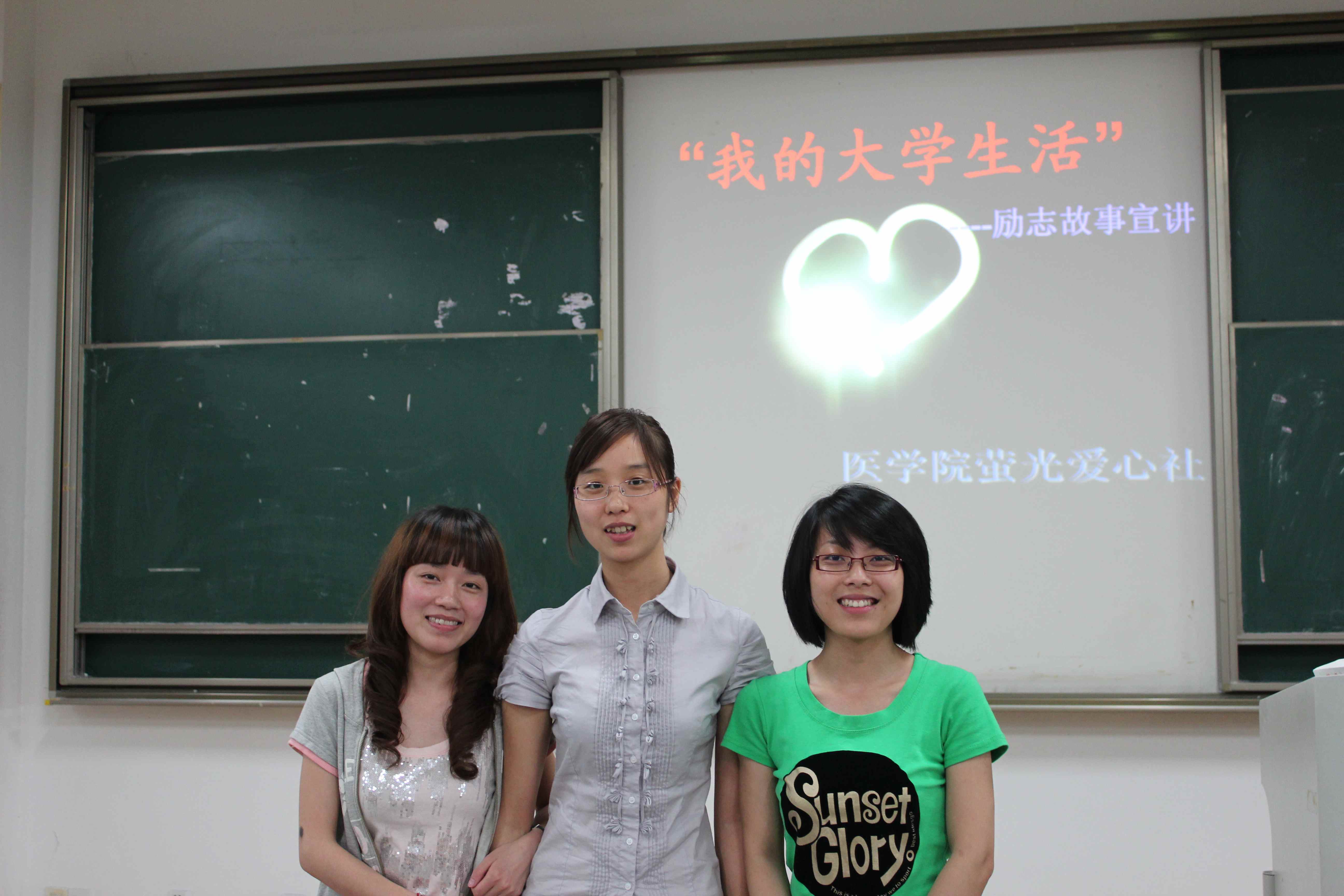 6月12日晚上6点半,在教四221举行了由荧光爱心社承办的“我的大学生活”励志故事宣讲活动,时时彩 党总支副书记谢宏老师、学工办杨敏老师和社工委副主席孙巧云同学及时时彩 全体贫困生、荧光爱心社成员参加了此次活动。 本次活动特邀请了医本051徐欢、医本051的周少余、医本N051的潘晓明和护本061的吴毅疑四位2010届毕业生来为大家讲述他们不平凡的大学生活,和学弟学妹们分享他们在时时彩 、在实习中所获得的宝贵经验,以此来激励大家学会把握自己,励志成才。 最后,谢宏老师做了总结发言,她强调:虽然我们不能选择自己的出生,但我们可以选择自己的人生,同时她也勉励大家:选择坚强,选择不松懈不放弃,我们的人生道路才会走得更好、更远!