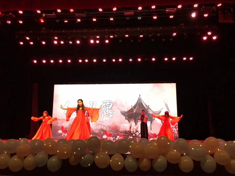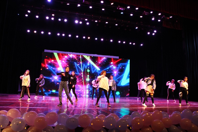 学生会带来的舞蹈《最好的舞台》作为开场,将观众带入一场视与听的盛宴,整场晚会节目编排新颖、形式多样、亮点频频,令人耳目一新。由荧光爱心社表演的《荧光舞》给观众带来了一场视觉盛宴,小品《手机重症监护室》《谎言机器人》引得现场观众笑声不断。除了幽默风趣的表演外,不乏有文艺小清新的《杯子舞》表演,艺术团带来的健美操更是尽显青春与活力,十佳歌手冠军冯一涵带来的歌曲《年轮》深入人心,赢得同学们呼声不断。此外,还有优秀社团、精品社团颁奖环节、游戏“你画我猜”和激动人心的抽奖使得晚会现场高潮迭起。最后由艺术团为大家带来舞蹈《Dessert &24K》,本次晚会在观众的欢呼与掌声中落下帷幕。