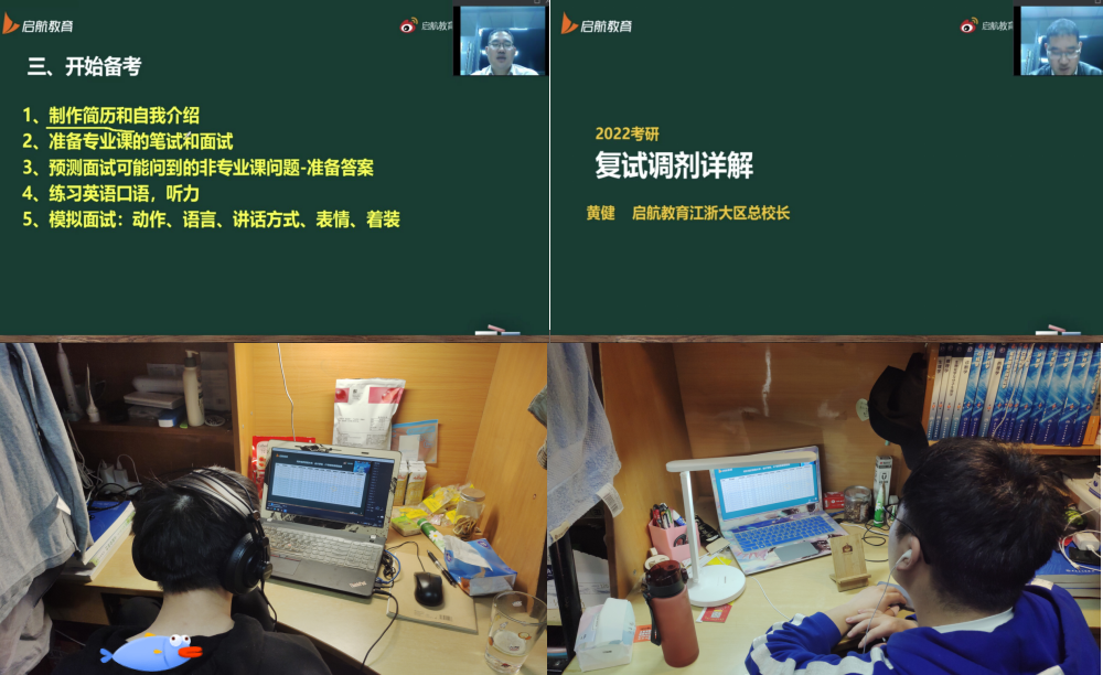 通过钉钉直播举办考研复试及调剂指导讲座。讲座特邀启航教育江浙大区总校长黄健老师进行讲解,学工办主任、辅导员及100多名2022届考研同学参加了此次线上讲座。