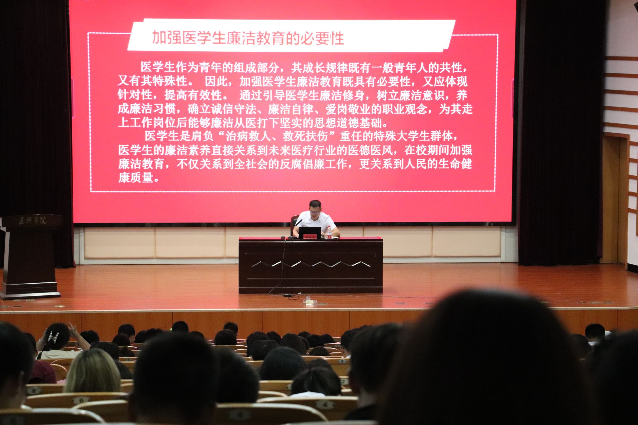 党委副书记李书记开展了以廉洁教育为主题的讲座。讲座以杏林典故,医学生誓言等方面讲了廉洁的重要性。强调了,在大时时彩