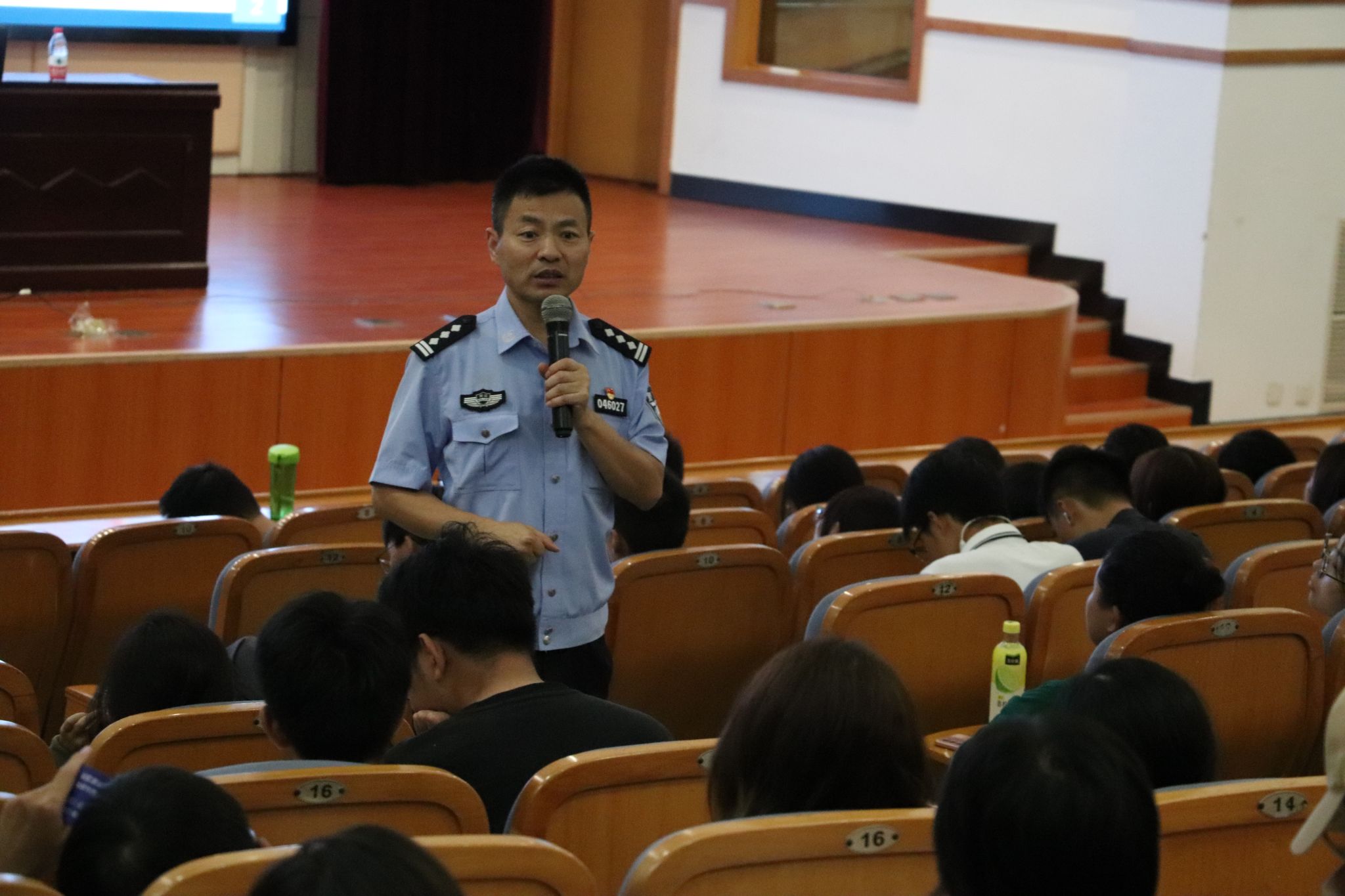 邀请了城南派出所民警张秋江给2023级新生带来了一节细致全面的安全讲座。他从安全问题、网络诈骗问题、消防安全问题、人身安全等方面入手,介绍了校园安全防护知识,为萌新们敲响警钟,要求他们牢记安全知识,成为自己的“第一手”保护人,为自己负责。