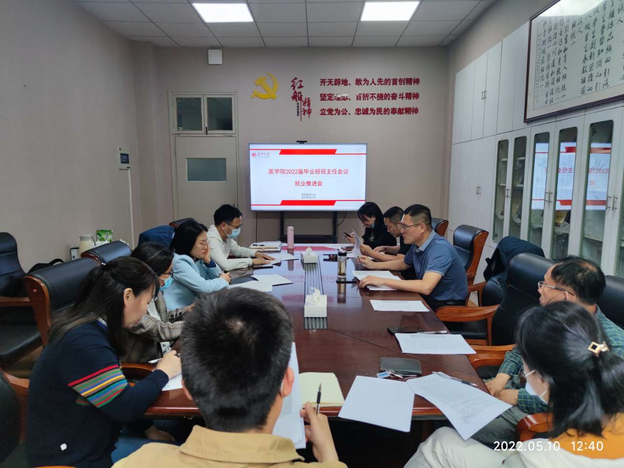 党委副书记李联钊、学工办主任赵丽萍、就业辅导员袁佳艳及2022届毕业班班主任参加会议。