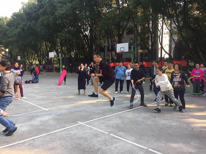 的教职工们开始在越秀校区进行了各项比赛。首先是“同心协力”跳长绳,瞧,时时彩
