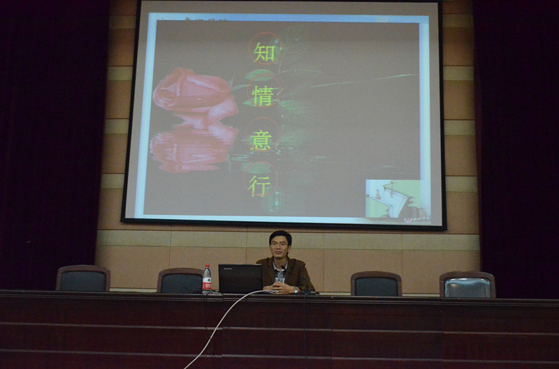 讲座伊始,石博士向大家介绍了有关心理健康教育的内容,之后,他通过“知、情、意、行”四个字开始了本场讲座的重点,他希望同学们能够在人格的最后塑造期----大学阶段,树立正确的人生观、世界观和价值观,在大一时,就规划好自己的大学生活,通过大学四年踏踏实实的学习,逐渐形成自己固定的人格,此外,石博士还向同学们具体介绍了“新生适应”、“社团活动”、“学习目标”、“人际交往”等九大大学生存在的主要心理问题,并且给同学们提出了很多有关学习、社交、心理以及考试就业等方面的建议,例如,他认为同学们要学会使用“六三一时间比例”,即60%认真学习,30%实践锻炼,10%强身魄体,通过合理分配时间,来充实的度过大学生活的每一天。