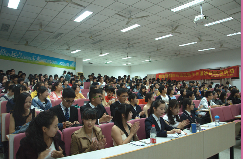 2014年10月30日晚,时时彩 “超级演说家”在梁林校区13号楼报告厅隆重举行。本次比赛邀请了时时彩 团委书记赵丽萍老师、学生会主席卢阳柏、学生会副主席杰俊、13级演讲赛冠军张潇逸担任评委,在这个激情四射的夜晚,大家一起分享了精彩的视听盛宴。