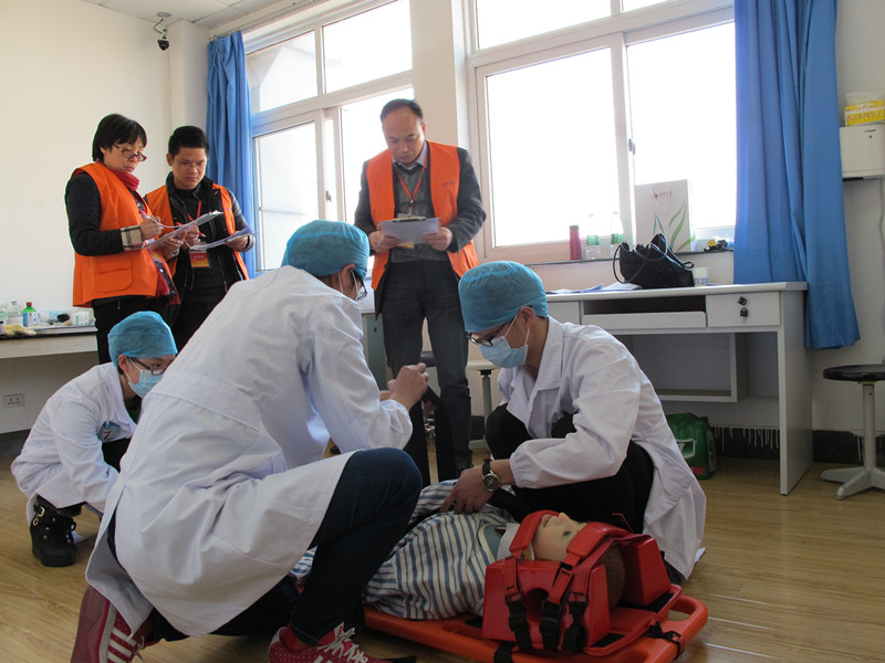 本次比赛分临床病例分析与处理、临床技能考核2个部分,其中临床技能考核分为两轮进行。第一部分采取笔试的方式进行,每队选手要在2小时内通过讨论,共同完成一份答卷。临床技能考核第一轮中,每支参赛队需要经过9站考试,选手们身着白大褂穿梭于各个“病房”,完成单人徒手心肺复苏、骨髓穿刺、静脉注射等内容考核。前两轮得分折算后累计分数前18支队伍进入综合临床技能考核第二轮,所有队伍在完成6站考核后根据三轮比赛得分决定最终名次。