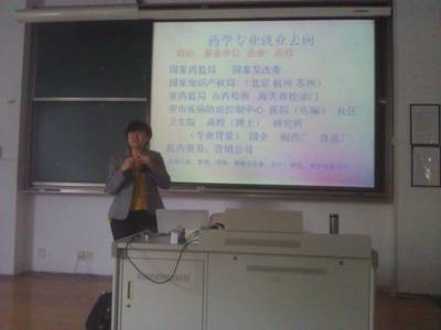 黄嬛副院长、谢宏副书记、学工办老师、药学专业所有教师及药学专业2010级学生参加了此次讲座。