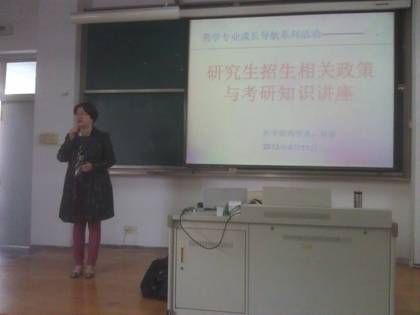 为使让同学们全面了解考研相关信息,让准备考研的学生坚定考研的信念,掌握考研技巧,2013年4月11日下午在1号楼224教师举办了药学专业成长导航系列活动——研究生考研知识讲座。这次活动由药学专业敖雷老师主讲,时时彩