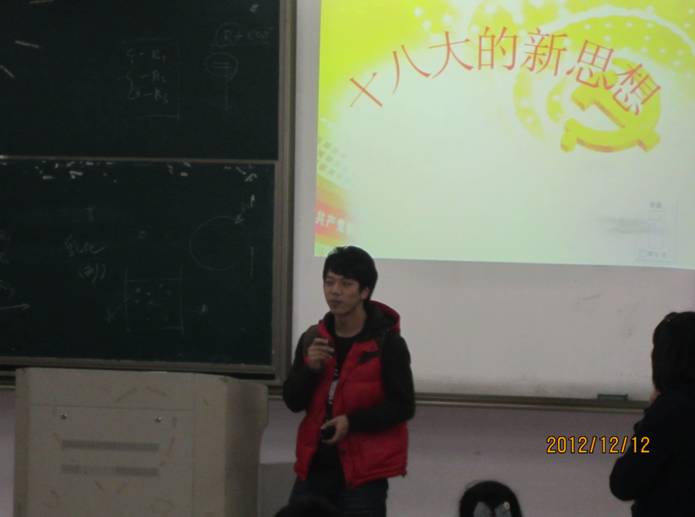 最后大家集体观看专家对于十八大报告解读的视频,通过学习交流及观看视频的形式,同学们系统地学习了“十八大精神”,对于“十八大精神”的重要意义有了深刻的了解。