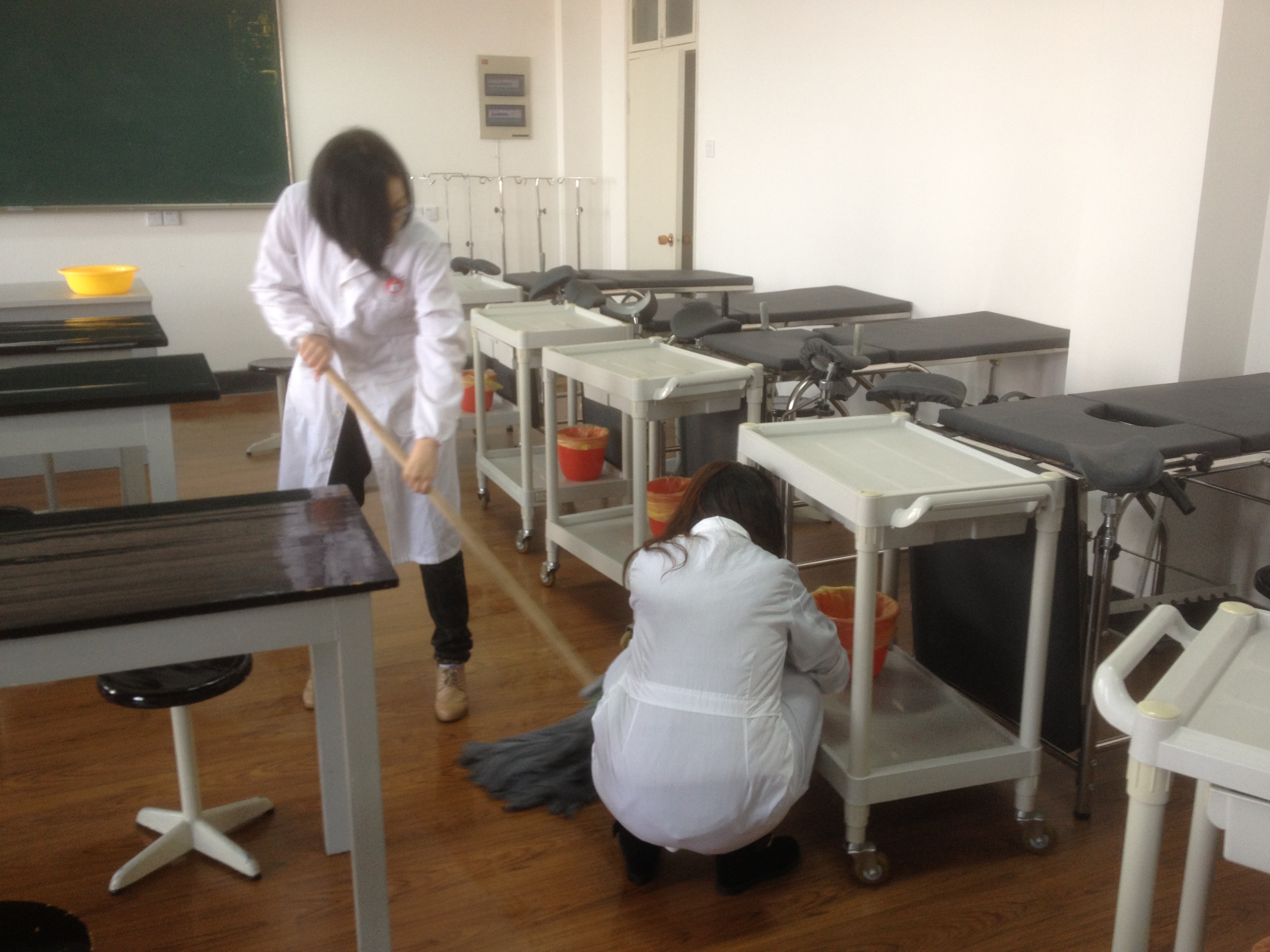期间,同学们在实验室老师和学生支部负责人的带领下,对过道、楼梯、实验室、多媒体教室的桌面、窗、地面等进行了认真地打扫清理。各位同学分工合作,齐心协力,不放过任何一个卫生死角。男同学们也显现出少有的男子汉气概,主动挑起大梁。由于是体力活,没多久就已大汗淋漓,但是,大家依然信心十足,团结协作,坚持到底,充分发扬不怕苦、不怕脏的精神。