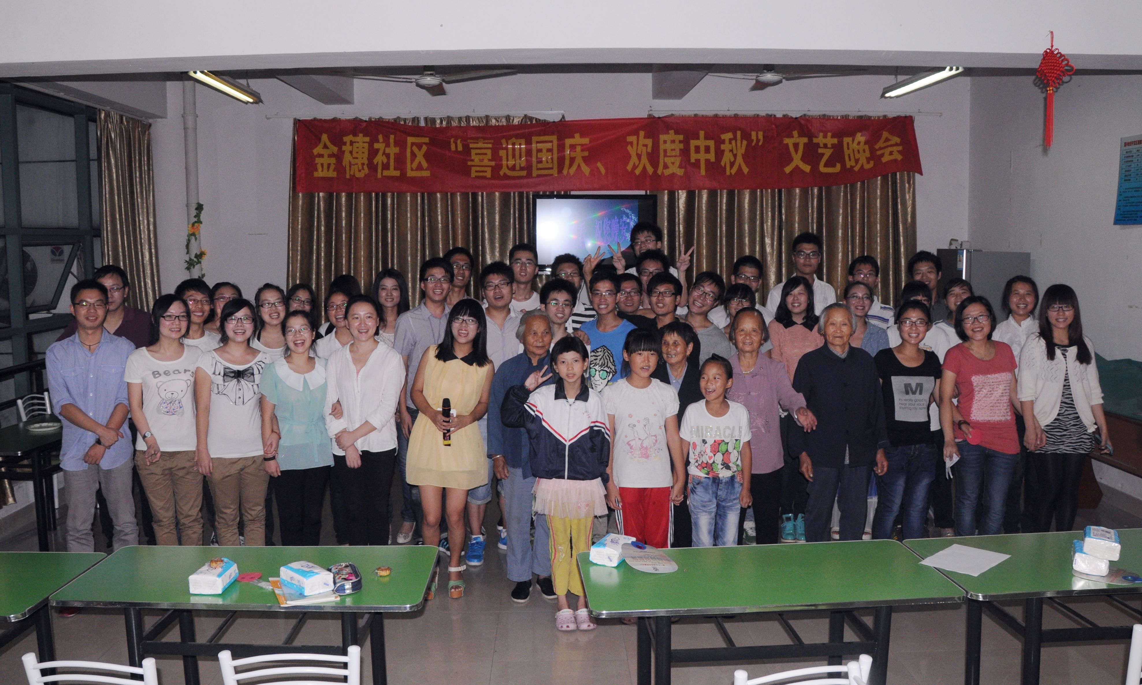 医本091/092学生专业党支部在开发区城南街道金穗社区的活动室里为社区居民举办了“喜迎国庆欢度中秋”文艺晚会。社区50多位居民以及支部全体同学参加了晚会,社区主任钱懿、王春玲以及时时彩