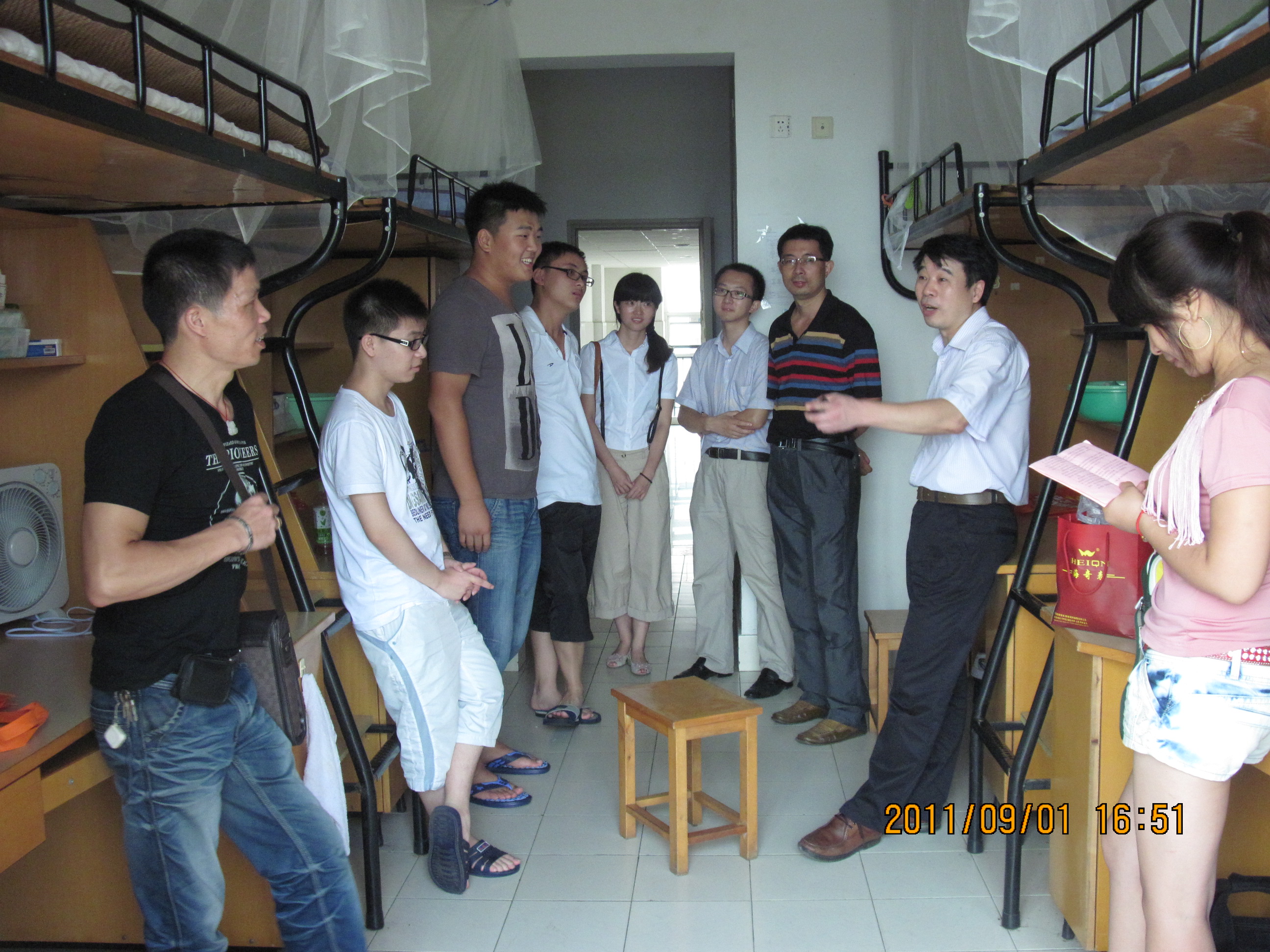 9月1日下午四点,时时彩 党总支书记、副院长张杰、副院长黄嬛、惠斌、党总支副书记谢宏及辅导员等一行分三组到男、女生公寓看望11级新生,为新生送去祝贺和关怀。在新生宿舍,院领导亲切地询问新生来自哪里,到校后是否习惯新环境,及时了解新生们的思想状况以及生活、学习上的困难,让他们珍惜缘分,营造团结向上的寝室氛围,指导他们确立目标,走好学医之路。 面对领导的亲切关怀和悉心教导,新生积极与院领导交流,表示要刻苦学习,争取在各方面取得进步。院领导对新生的关心让新生们感受到了时时彩 大家庭的温暖。