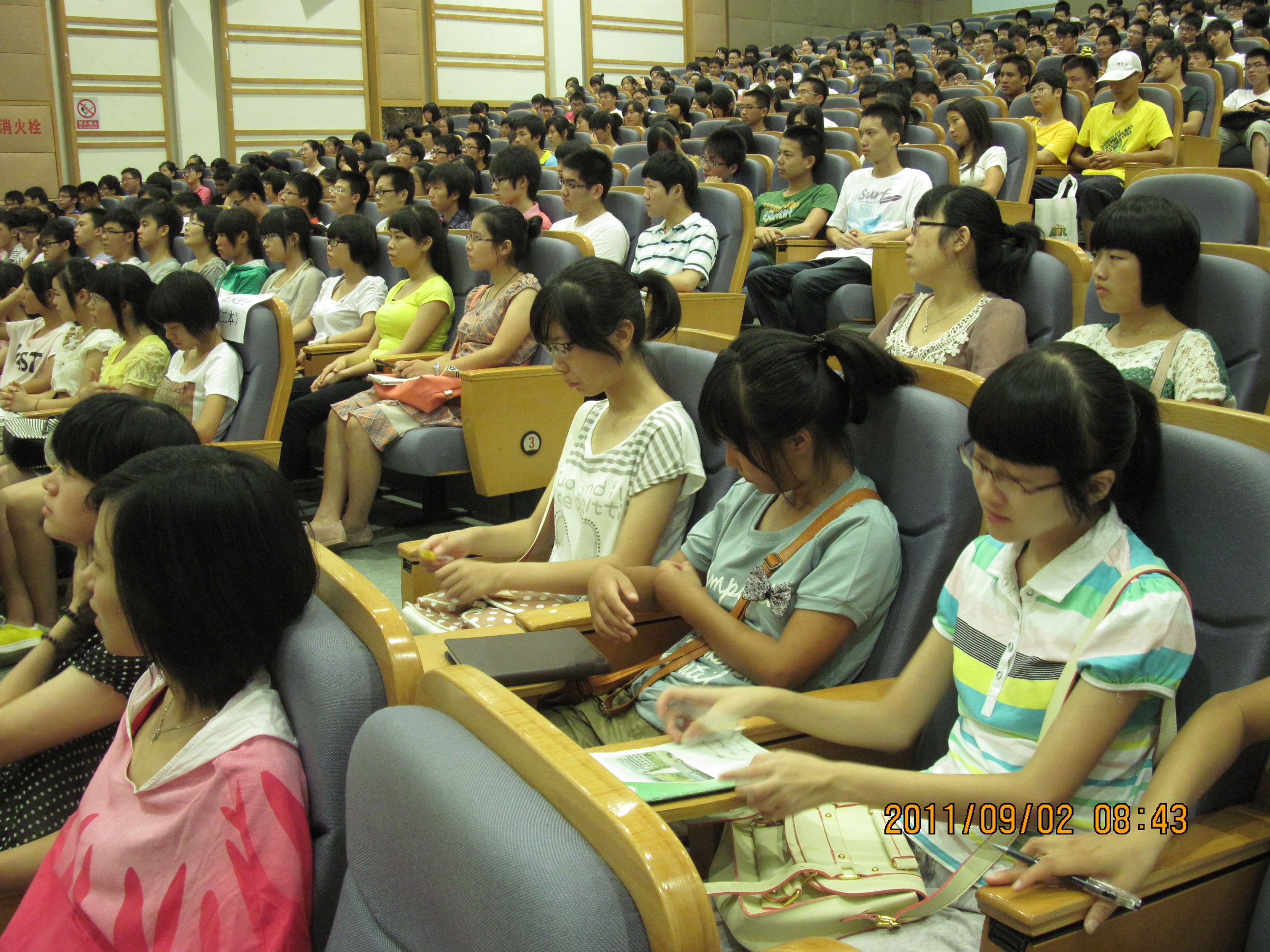 在TCL报告厅召开2011级新生大会,来自全国各地近400位2011级新生参加大会,大会由时时彩