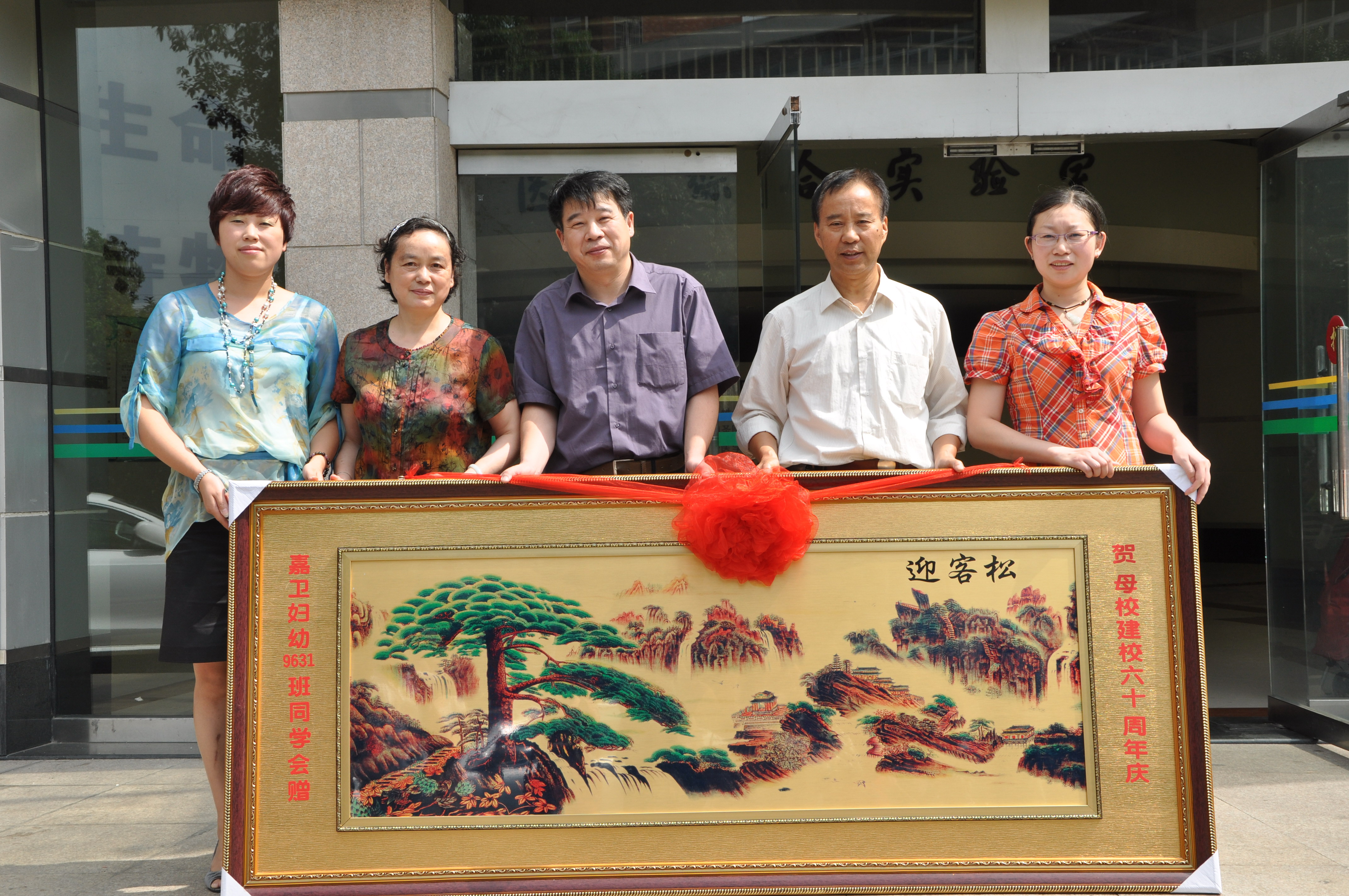 赠送代表校友情谊的画匾,祝母校在各方面取得更辉煌的成绩。