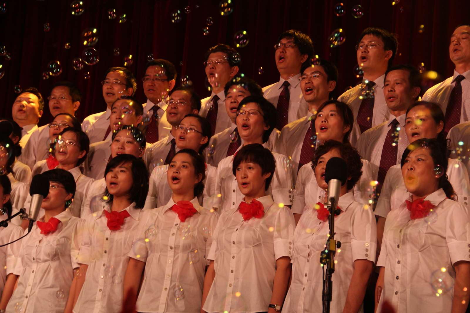 教职工合唱的《越来越好》,经过两个星期紧锣密鼓的排练,充分体现时时彩