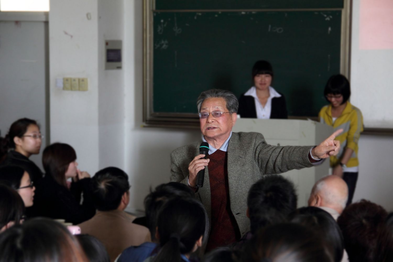 在“歌唱祖国”的嘹亮歌声中,随着主持人的报幕,党史知识竞赛正式开始。本次竞赛设“是非判断题、必答题、抢答题、自选互答题及风险题”五个环节,内容涵盖党史、党章、党的内部监督条例以及党的最新方针政策。赛场上,参赛选手们踊跃答题,展示出了丰富的理论知识。在紧张的赛程中,徐伯康老先生为同学们讲解了五四运动、南昌起义和嘉兴红船等精彩的小故事,王雄老先生用他那浑厚的歌喉演唱了“学习雷锋好榜样”等几首大家耳熟能详的红歌。周文江老前辈就自己曾参加过的渡江战役、淮海战役娓娓道来,将同学们带回到几十年前那战火纷飞的岁月。