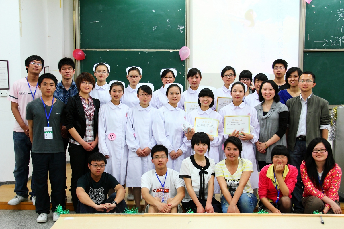 隆重举办了“白衣天使” 大赛。本次大赛由团总支江欢老师,学工办彭溶、杨玲飞老师及前任学生会主席施强和现任学生会主席杜侠莹担任评委,在场的11名护本选手和观众以满腔热情,积极投入到本次大赛中。