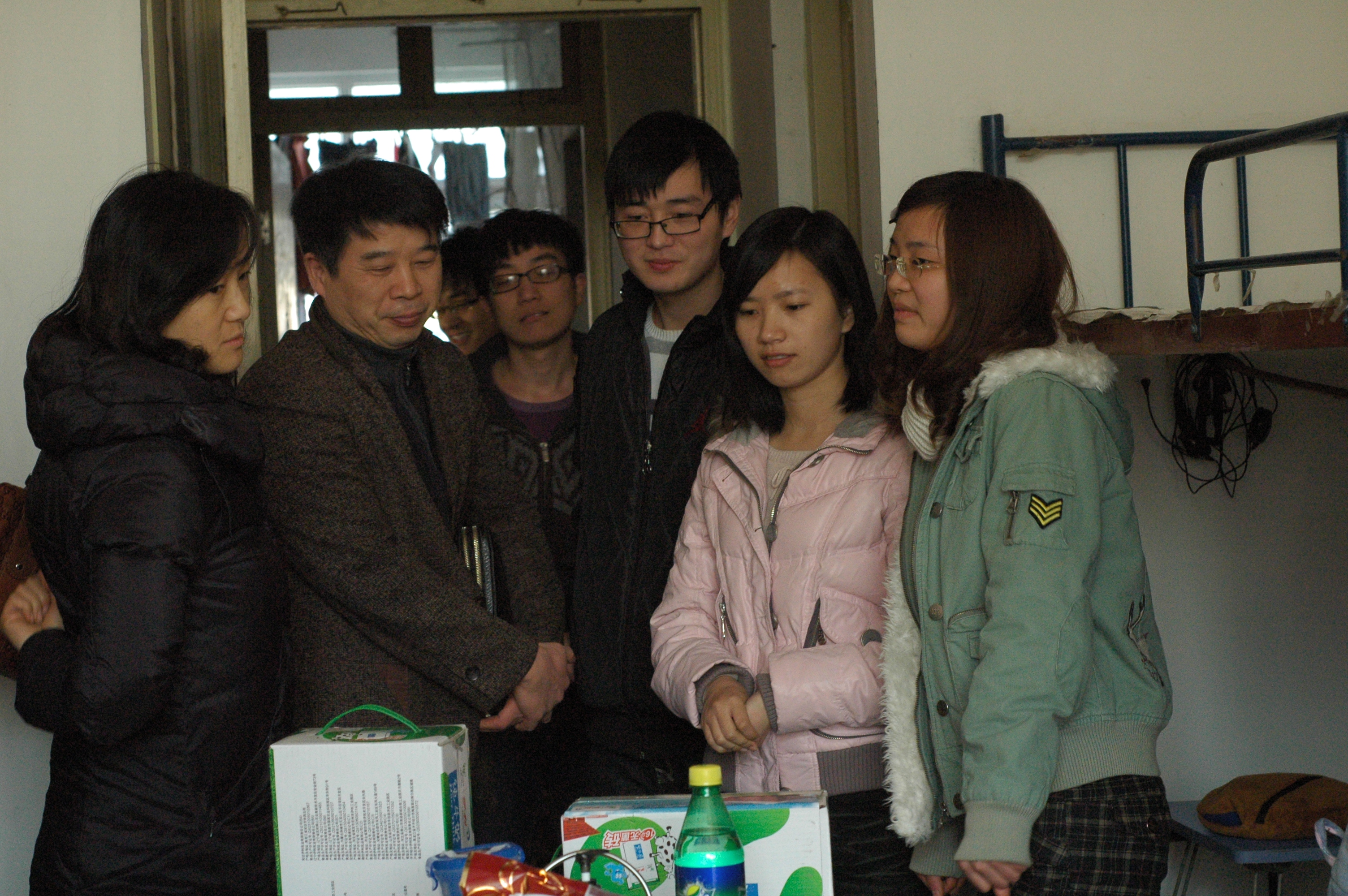 张杰书记、谢宏副书记、学工办蒋小红主任、彭溶老师来到老卫校宿舍看望考研学生。