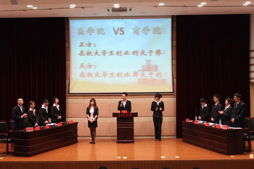 的观点则是“在校大学生创业弊大于利”。两方就这一辩题展开激烈的讨论。