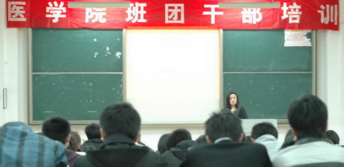 团总支书记赵丽萍主持,学工办和团总支老师出席,参加培训的同学由09级各班团干部以及学生会、社工委、青协等新任成员组成。