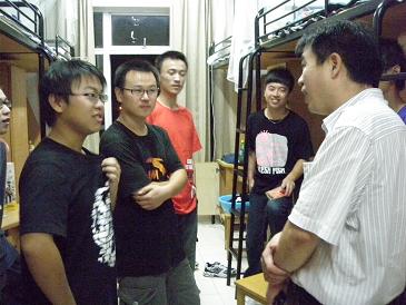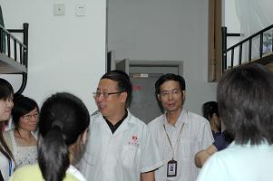 09级新生。院长宋国杰、党总支书记张杰、主管学生工作的副书记谢宏、副院长曾宪智、王敏及院办主任陆国明、学工办主任蒋小红等一行分两组到男、女生公寓。院领导看到新生就像对待自己的孩子一样,对他们嘘寒问暖,欢迎他们来到这个温暖的大家庭,亲切地询问新生来自哪里,到校后是否习惯新环境,生活上有没有不适应,同时,把自身的经历、经验介绍给新生,指导他们将来怎样走好学医之路。面对领导的亲切关怀和仔细教导,新生积极与院领导交流,表示要刻苦学习,争取在各方面取得进步。