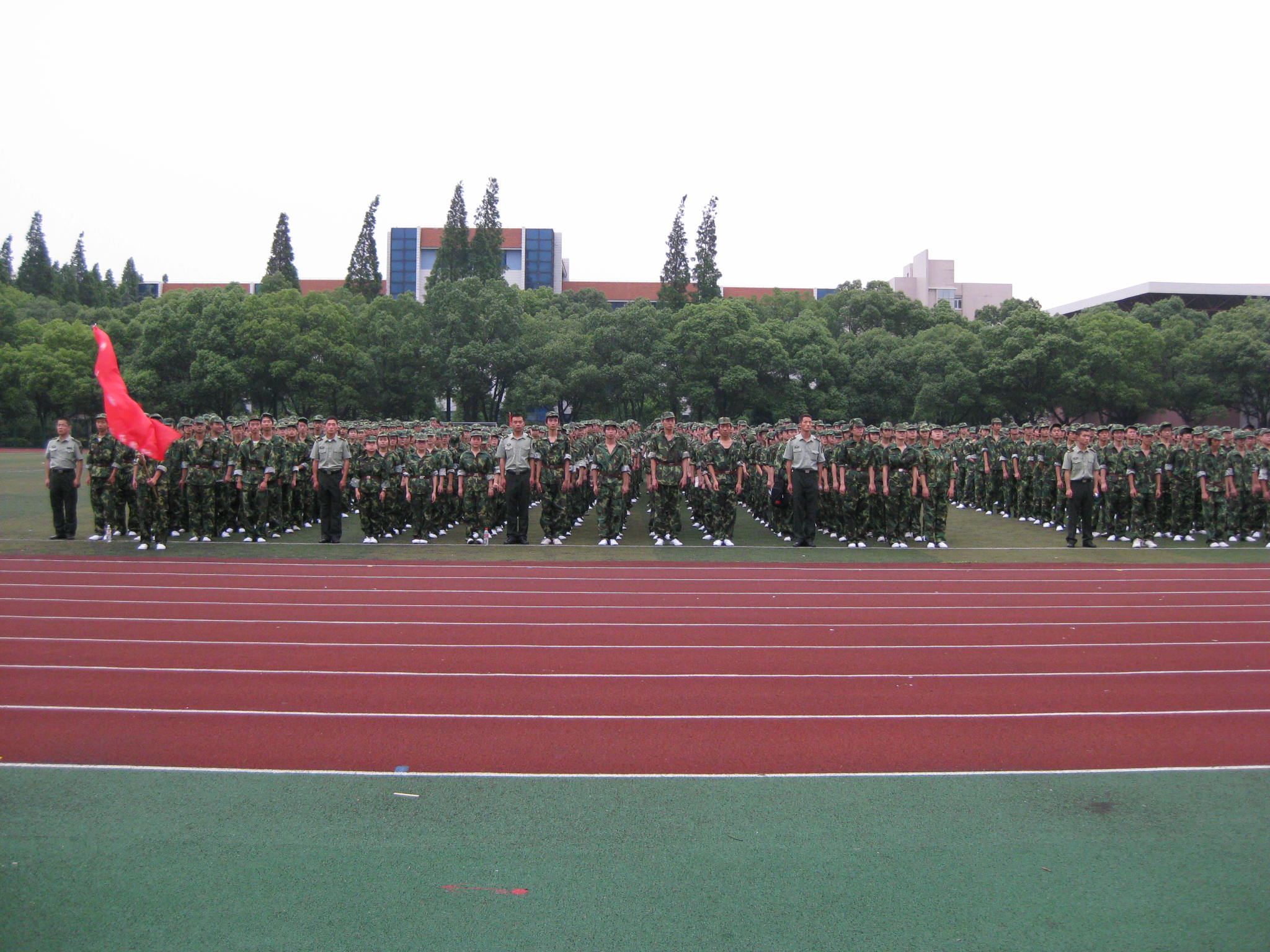 指导员等。参加本年度军训的是2008级学生,编为3个团15个连,共5000多位学员。