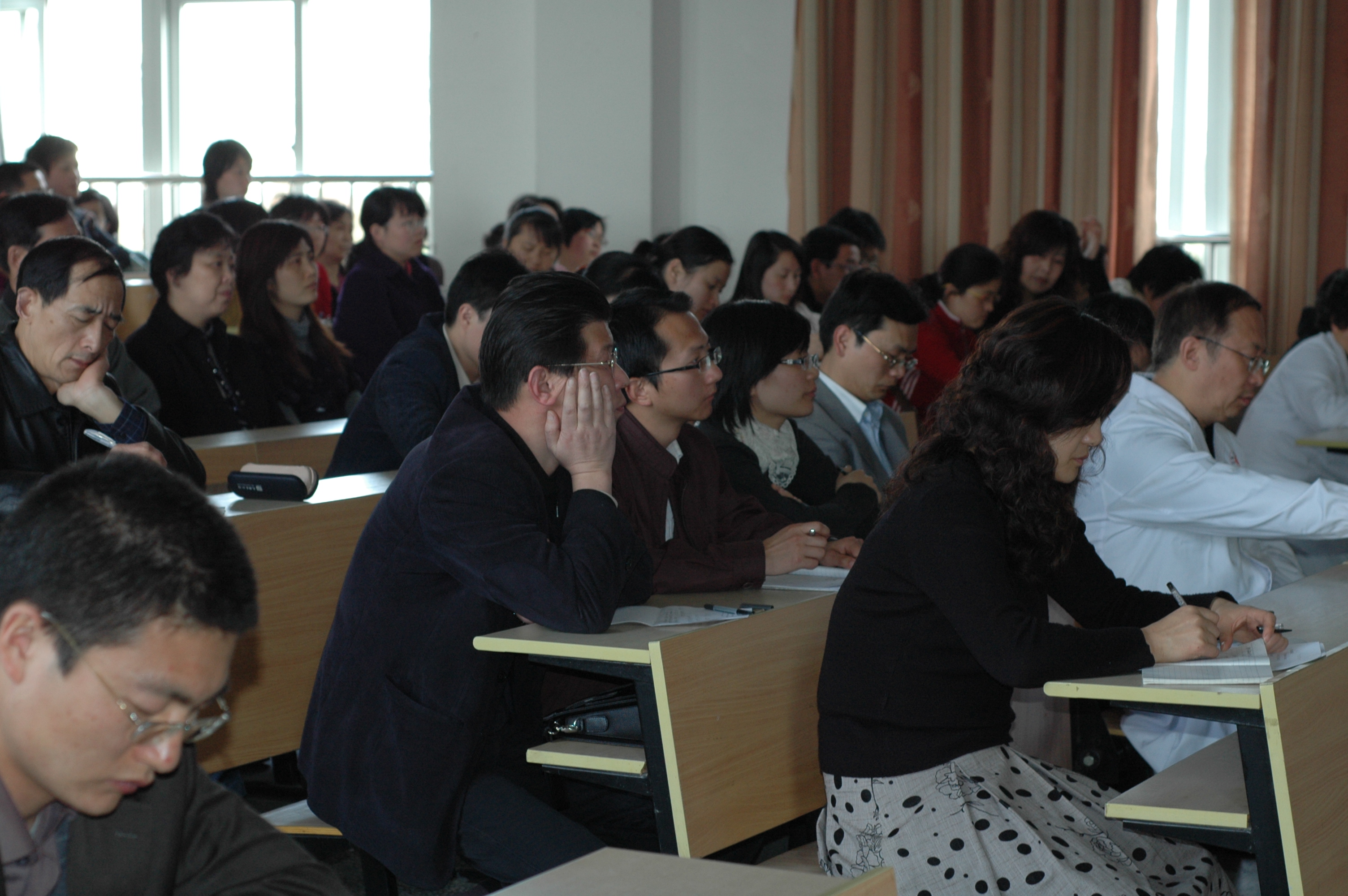 党总支书记张杰主持报告会,100多名党员和教师参加了报告会。