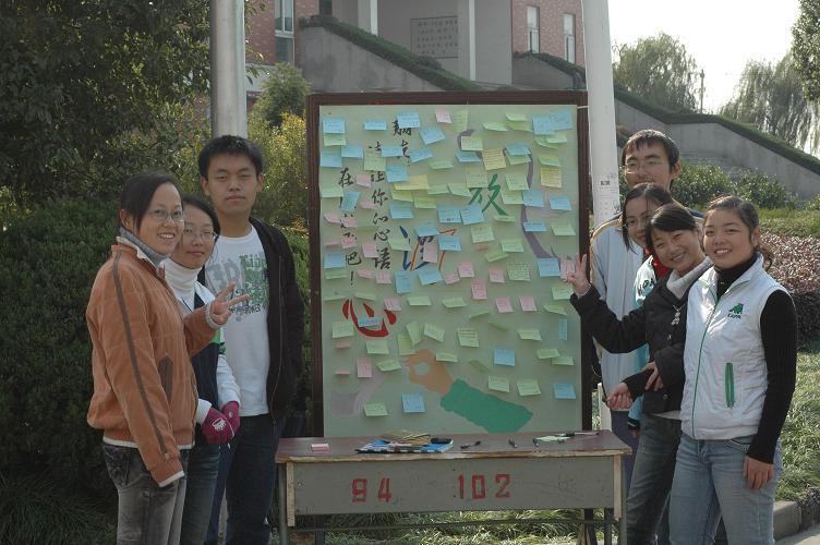 本日中午,时时彩 学生记者团在食堂前的路口开展了“放飞祝愿,放飞理想”活动。记者团成员把这次活动的目的告知来来往往的同学,请他们写下对亲人、朋友、同学、大众、自然、国家、世界、自己......的祝福和期望。很多同学欣然命笔,不一会儿,只见蓝天丽日下,五颜六色的粘贴纸在底板上随风轻舞,同学们的心语在天地间飞扬。要想知道大家写了些什么?那就请你抓紧时间去找记者团员吧!他们,正把大家的心声汇拢成集呢!