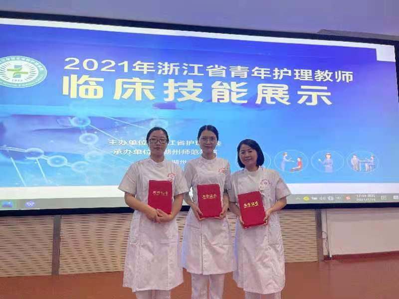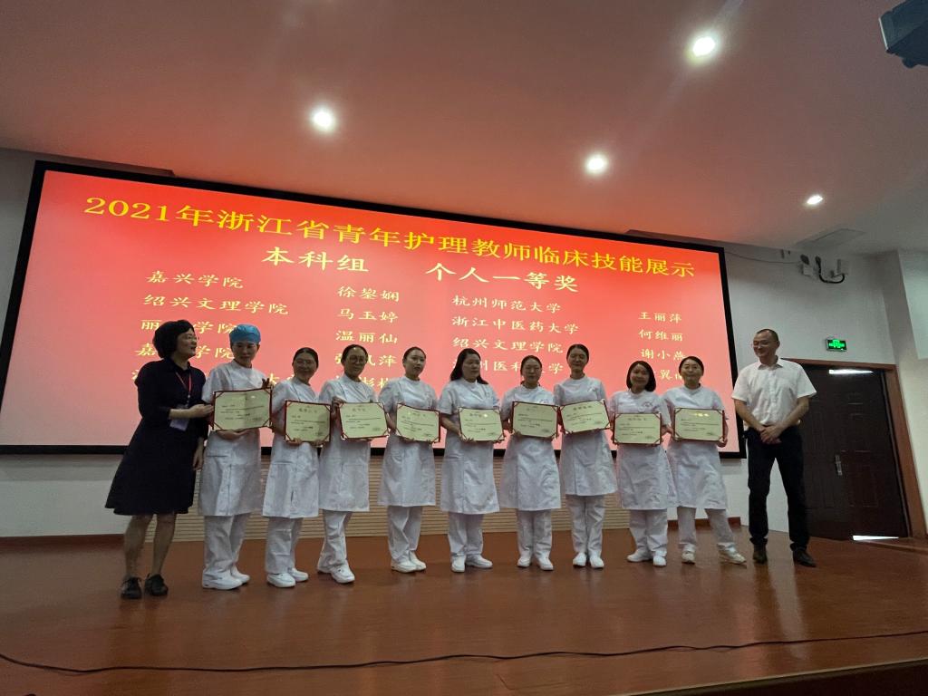 护理学系徐鋆娴、附属第一医院张凤萍获个人一等奖,雷璇获个人二等奖,参赛团队获一等奖,并将作为浙江省代表队之一参加8月份举行的全国护理本科院校教师临床技能竞赛。