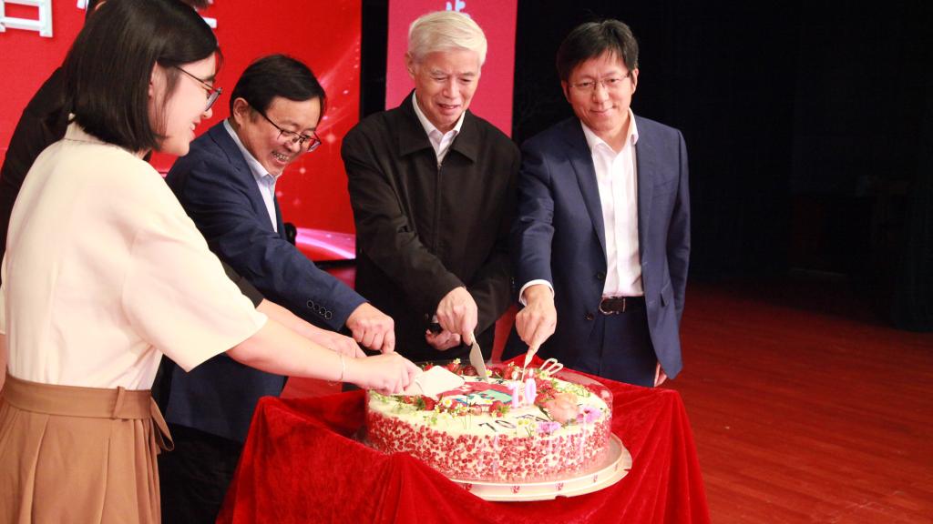 校领导、校友代表和学生代表一起切开了院庆70周年生日蛋糕,共同分享甜蜜与美好,向时时彩