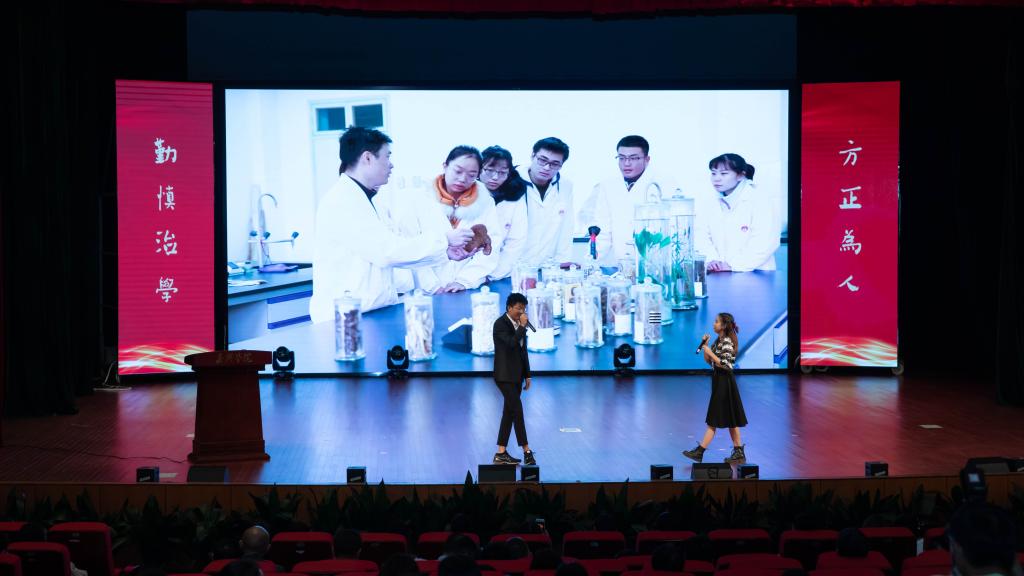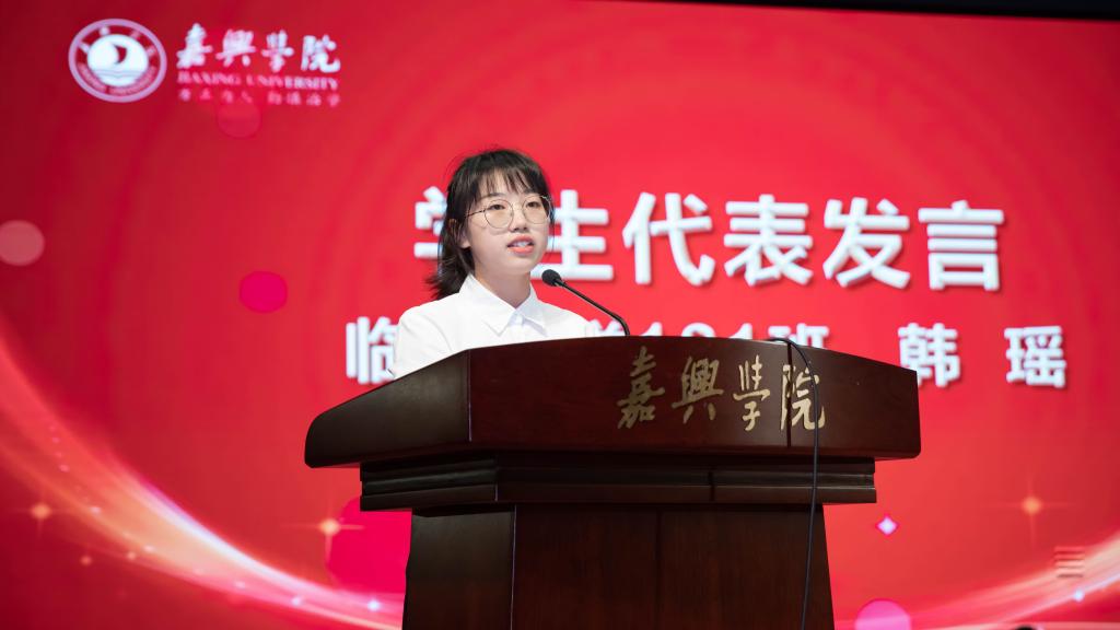 临床医学181班韩瑶同学作为学生代表发言,她代表广大同学承诺,将秉承校友们的精神和操守,努力成为道德高尚的人、对社会有用的人,积极投身到建设社会主义现代化国家的伟大事业中去。