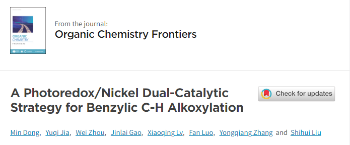 药学系青年教师刘石惠博士以通讯作者身份在英文期刊《Organic Chemistry Frontiers》发表了论文“A Photoredox/Nickel Dual-Catalytic Strategy for Benzylic C-H Alkoxylation”(DOI: 10.1039/D1QO01421H),嘉兴时时彩