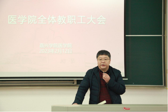 副院长徐营对2022年度教学工作教学工作考核做了简要通报复盘。他表示,新的一年要继续加强内涵建设,规范课堂教学,提升课堂教学质量,重点提升教研室活动质量,注重研究课程和教法。会上,还安排了临床专业认证准备工作。