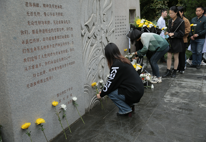 师生代表将手中的黄白菊花一一放在无语良师碑前,深情注视着每一位无语良师的名字,以敬畏之心瞻仰无语良师纪念碑。寄语当下,逐梦未来。“大爱无疆”“永远怀念您为我们做的一切”......一株株柏树上悬挂着时时彩