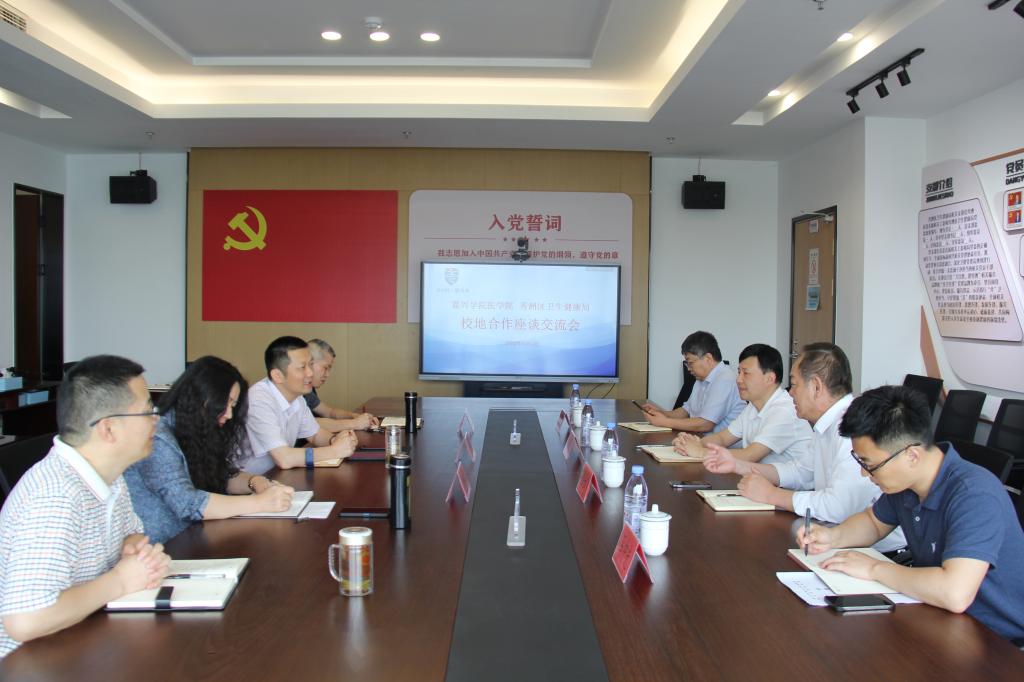领导一行表示欢迎,并介绍了秀洲区卫生健康事业基本情况。双方就基层定向、学生就业、技能培训等方面进行深入交流。双方一致认为,要主动适应基层医疗卫生事业和经济社会发展需求,充分发挥各自优势特色,创新合作机制,进一步加强交流与合作,为健康嘉兴作出积极贡献。