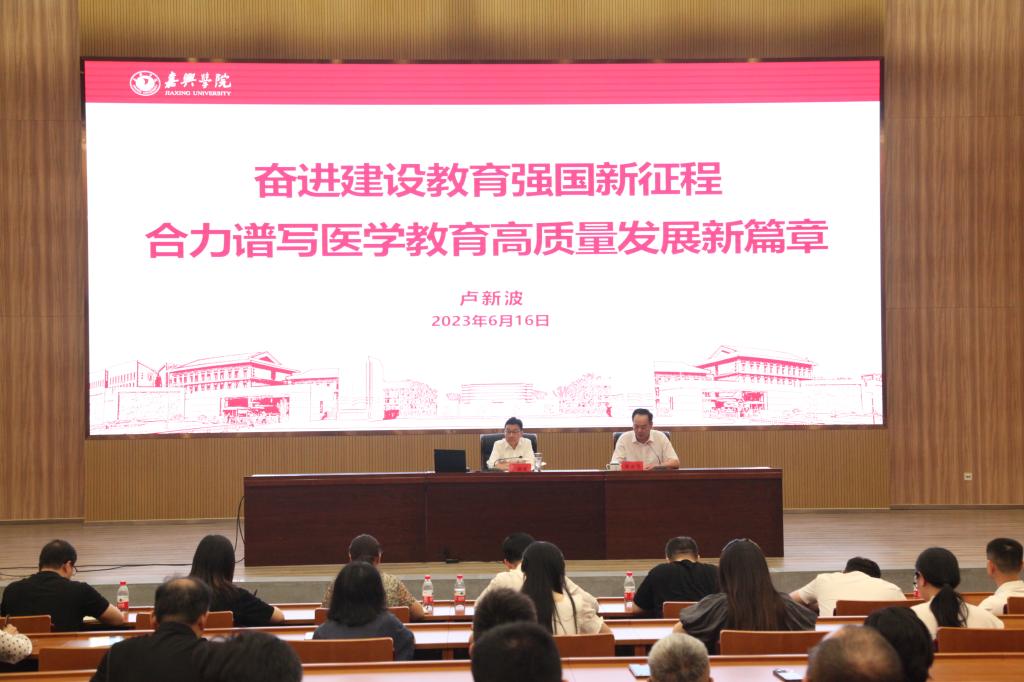 关于学习贯彻习近平新时代中国特色社会主义思想主题教育相关工作部署,6月16日下午,校党委书记卢新波以《奋进建设教育强国新征程 合力谱写医学教育高质量发展新篇章》为题,为时时彩