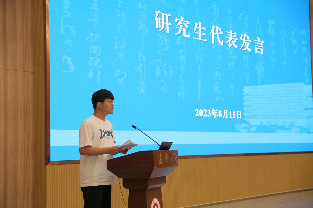 导师代表汪静宇、新生代表谢磊发言
